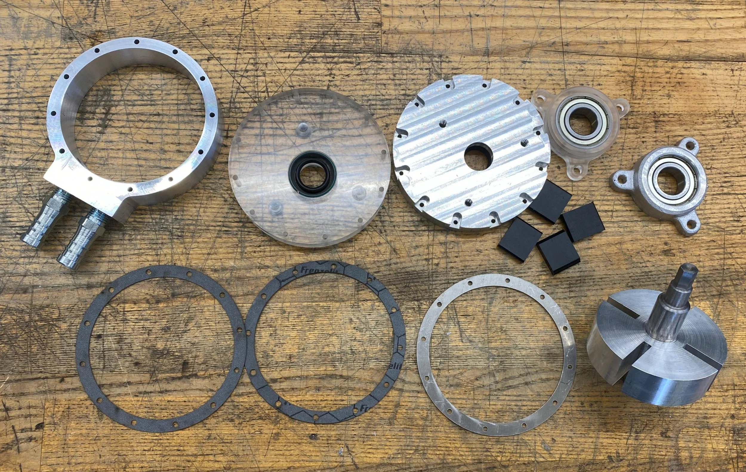 Part of the project was to manufacture and assemble a rotary vane pump from a provided set of drawings. This included using a milling the vanes, press-fitting the bearings into their respective housings, turning the shaft connecting to the drill for rotation (as well as milling the hex for drill attachment), inserting helicoils, using a CNC machine to make features on the face-plate, and using a waterjet to cut gaskets. The pump was then tested for functionality – luckily there were no leaks!